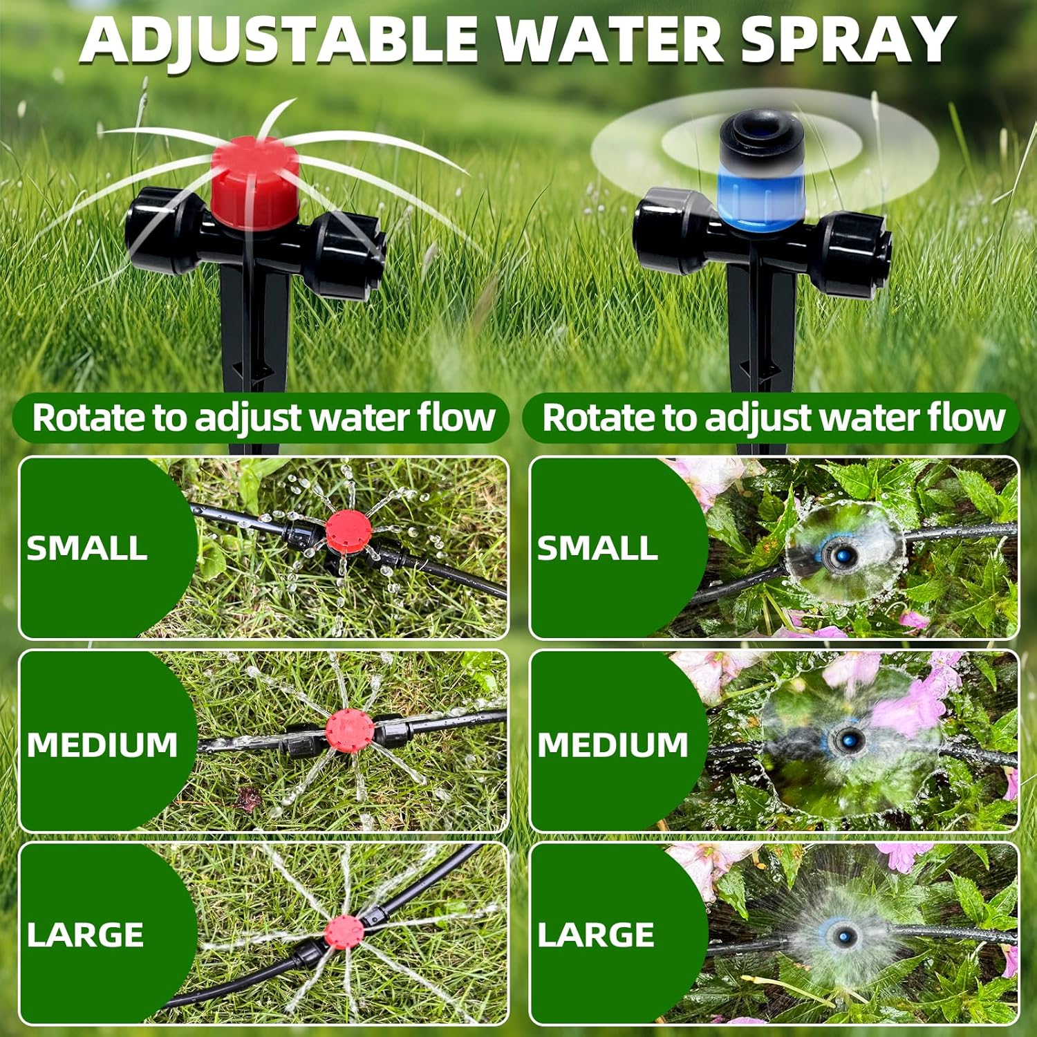 - 【Wide Applications】: This watering system fits for a wide range of scenarios, including lawn irrigation, patios, gardens, vegetable beds, roof cooling, agriculture, flower beds, plant greenhouses, and raised beds. its versatility makes it suitable for a wide range of applications, providing a comprehensive solution for all your watering needs