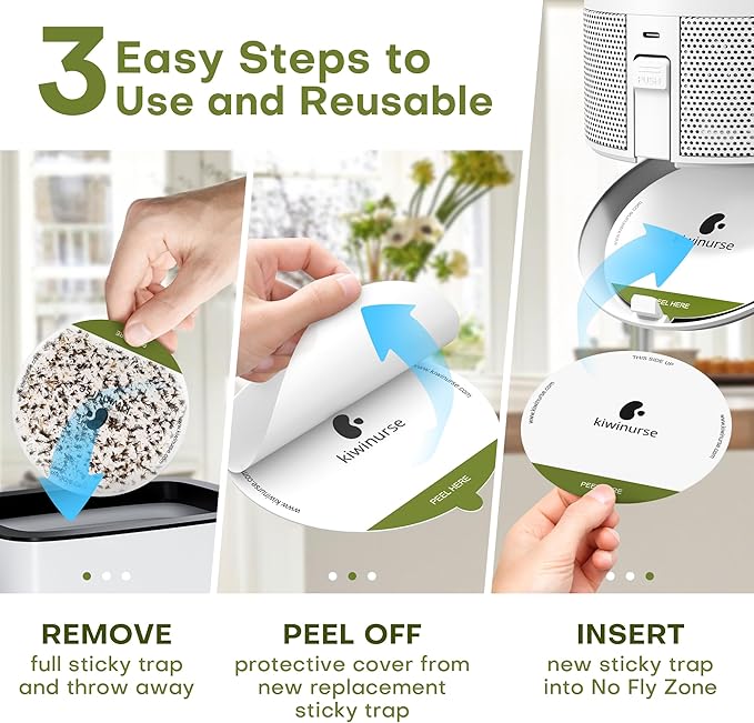 - NO ZAPPING, NO SPRAYING! - Flying insects get trapped at the bottom. Simply open the bottom, dispose of the insects if the card is full, and replace with a new glue board. It comes with 5 sticky cards for long-lasting use