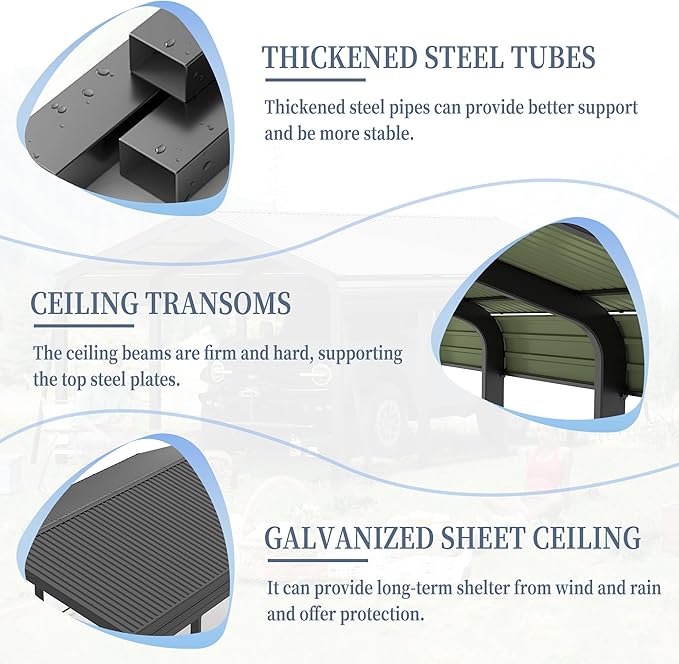 - โ ๐๐ฎ๐ฅ๐ญ๐ข-๐๐ฌ๐ ๐๐๐ซ ๐๐ก๐๐ฅ๐ญ๐๐ซ: Beyond a large car port, the carport canopy 12x20 heavy duty adapts into a shaded outdoor lounge, a convenient workspace, or extra storage for your tools and gear. Designed to blend seamlessly into any environment, it delivers ideal protection for vehicles and ample room for relaxation and hobbies.