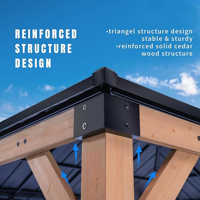 - 【EXCEPTIONAL CUSTOMER SERVICE 】With every purchase of our backyard wood gazebo,our dedicated support team is available 24/7 to ensure prompt responses to your inquiries or concerns. If any accessories of our deck gazebo should be missing, please reach out and our professional customer service will address the issue promptly.