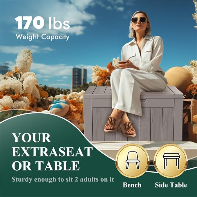 - Deck Box Double Duty : Use outdoors as a stylish deck storage chest or indoors as a sleek entryway organizer. Waterproof design handles sudden downpours, while reinforced corners prevent warping.