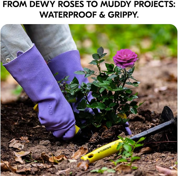 - ▲【Superior Grip & Waterproof】Designed for serious gardeners, extured palm and fingers provide a secure hold on tools, wet surfaces, or slippery objects for safer handling. Waterproof durability meets superior wet/dry traction. These gloves deliver precision and protection, whether pruning, planting, or tackling messy tasks.