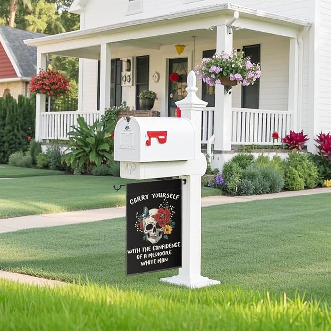 Carry Yourself With The Confidence Garden Flag, Funny Skelethon Feminist Yard Sign for Outside, Women's Equality Skull Floral Flag, Women's Rights Empowerment Banner, Feminist Gifts for Women
