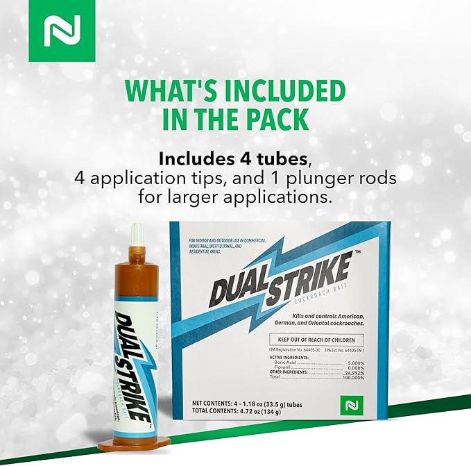 Nisus Dual Strike Cockroach Bait Gel, Kills Roaches Fast with Boric Acid and Fipronil, Long-Lasting Indoor and Outdoor Pest Control Use, 4 Pack
