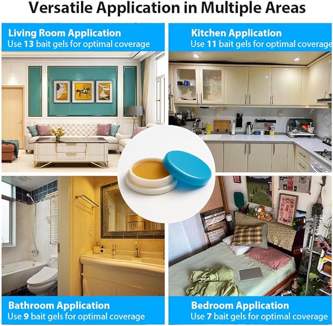 - Strong Attraction & Colony Elimination β Our roach gel bait uses a powerful formula with Peppermint Oil, Citronella Oil, and other ingredients to lure roaches effectively. Once consumed, the bait works slowly, allowing infected roaches to return to their nests and spread the poison to others, wiping out entire colonies for long-term roach control.