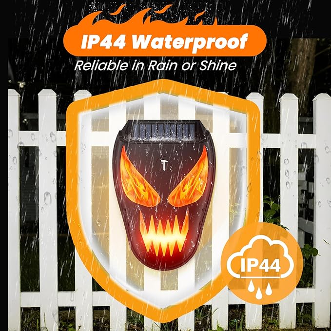 - Efficient Repelling: Equipped with 13 breathing amber flashing LED lights that simulate bonfires and predator's eyes, this deer repellent can effectively repel coyotes, deer, wolves, foxes, raccoons, skunks, cats and many other nocturnal animals.