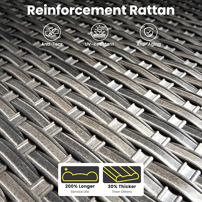 - All-Weather Rattan: Crafted from handwoven premium PE wicker with intricate handwoven detailing, this set is UV-resistant, waterproof, and built to withstand sun, rain, and wind. Its durable construction ensures long-lasting beauty without fading or cracking