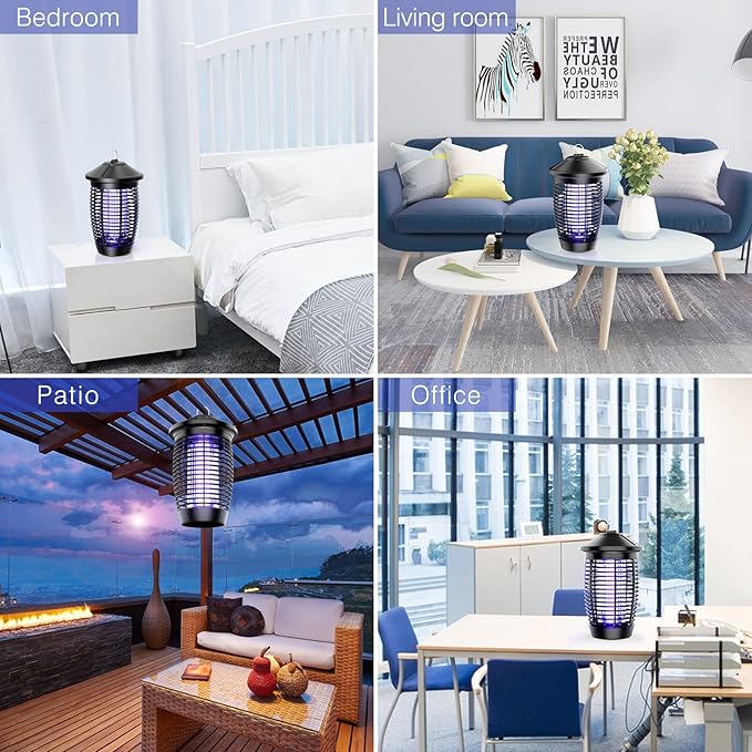 - Widely Used: Mosquito killer lamp 360 degree integral design, can cover 100 square feet. Can be used indoors and outdoors. Perfect for home, office, restaurant, school, garden, balcony, farmhouse, etc. To enhance the effect, we recommend placing the mosquito zapper outdoor at a height of 20-100 cm so that the UV light can cover the entire space of the room.