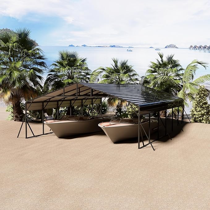 - MULTI-USE METAL CARPORT - The outdoor metal carport featuring a heavy-duty galvanized canopy and garage car shelter provides sufficient space for vehicles and trucks. It can act as a carport canopy and a shelter for outdoor activities such as parties, weddings, and trade shows. The gray finish gives an elegant and stylish appeal to your backyard. Customize your outdoor life right now
