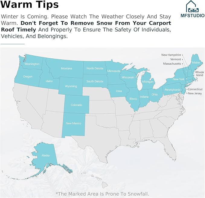 - Upgraded Structure for Simpler Assembly: Unlike the traditional structural design, this car canopy adopts the innovative and upgraded construction design of adaptive threaded pipe frame, which shortens the installation process of the whole frame and makes the assembly more convenient and quicker.The heavy duty carport can be installed on dirt floors, asphalt or concrete,comes with all the necessary hardware and easy-to-understand instruction video