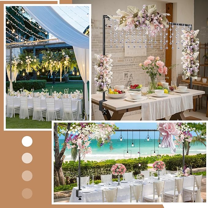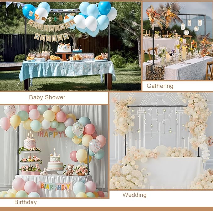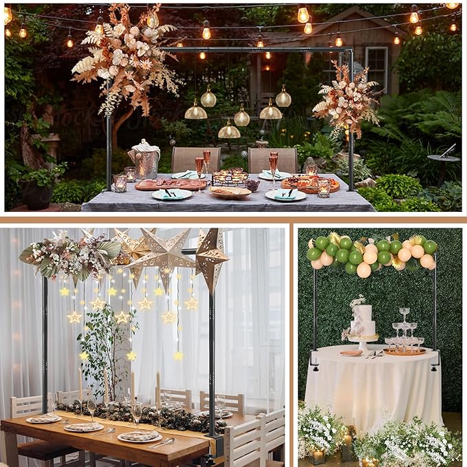 - Versatile Decoration: This Adjustable Table Arch is perfect for various occasions, meeting various decoration needs such as family gatherings, birthday parties, weddings, New Year, Halloween, Thanksgiving, Christmas, anniversaries, etc. The tabletop arch can be decorated with flowers, balloons, green leaves, tulle, colored lights and garlands to create a stunning backdrop for any event.