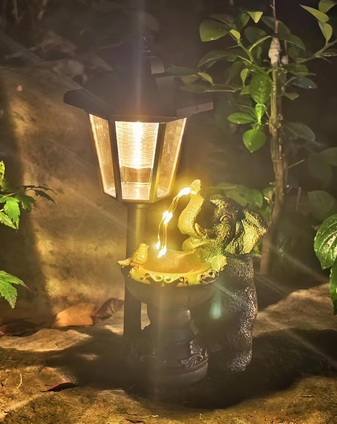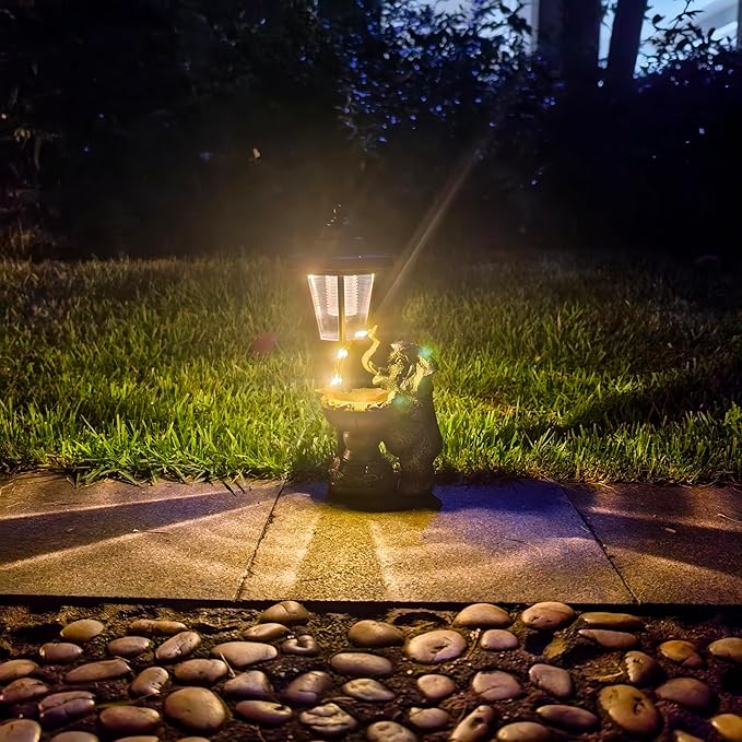 - Unique Detachable Lamp Top & Stake Design: This figurine light features a lamp post with a detachable lamp head and ground stake. The lamp head easily detaches for simple installation and storage, while the ground stake ensures stability. Paired with the elephant statue and birdbath, it creates a striking centerpiece in lawn, garden pathways, or backyards