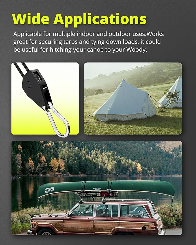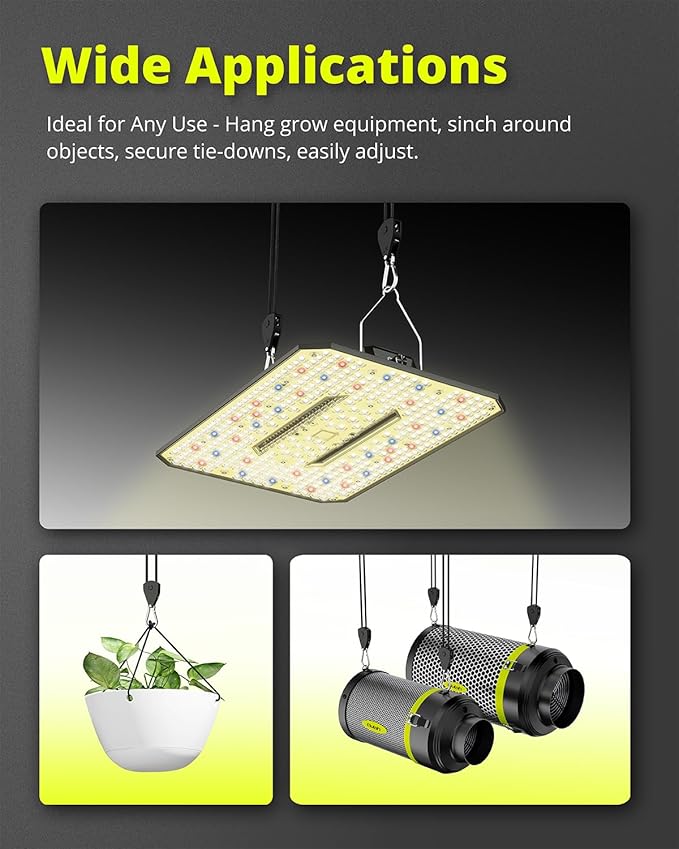 - Multi-Purpose: Multi-Purpose:These tie-down ratcheting straps are perfect for hanging plants, grow lights, anchoring tents, kayak accessories, and more