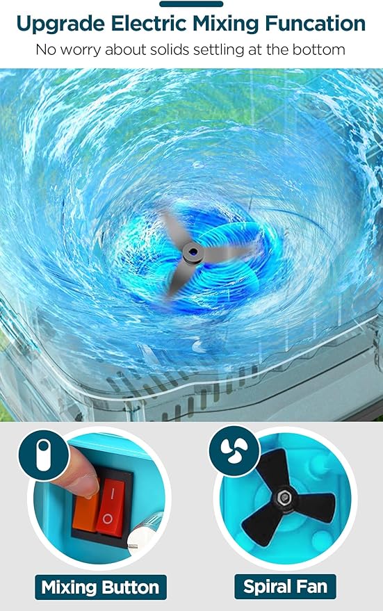 - Built-In Mixing: The electric backpack sprayer is equipped with an automatic mixing mechanism. When adding powdered or liquid herbicides, pesticides, cleaning agents, or other formulations, simply hold the mixing button to ensure thorough blending for consistent application.