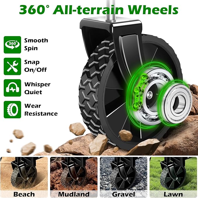 - All Terrain Wagon: Folding wagon cart with wheels features 360° swivel wagon wheels, offering smooth, precise turns on any surfaceāsand, grass, gravel, or pavement. Engineered for adventure, this all terrain wagon is stable even when fully loaded. A heavy duty collapsible wagon that adapts to wherever you roll. This rugged foldable wagon handles every bump in the roadāideal for families, adventurers, and weekend warriors