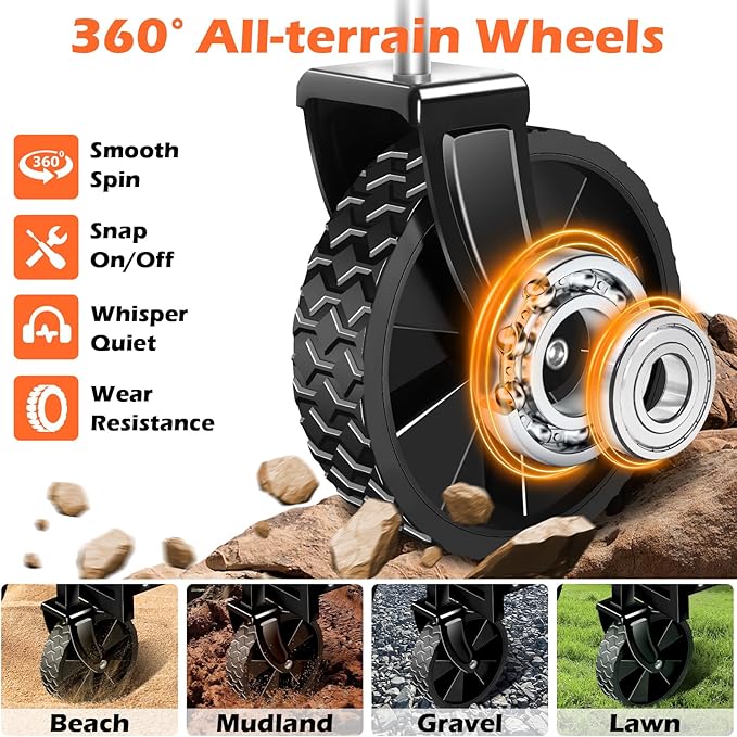 - All Terrain Wagon: Our folding wagon cart with wheels features 360° swivel wagon wheels, offering smooth, precise turns on any surfaceāsand, grass, gravel, or pavement. Engineered for adventure, this all terrain wagon is stable even when fully loaded. A heavy duty collapsible wagon that adapts to wherever you roll. This rugged foldable wagon handles every bump in the roadāideal for families, adventurers, and weekend warriors