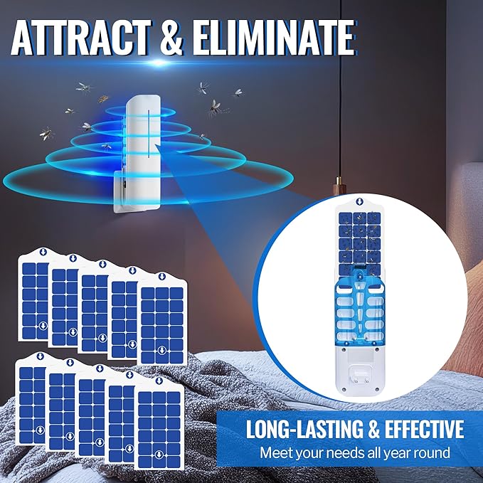 - Easy to Use: Peel off the plastic cover of the flying insect light trap refills before use, insert the sticky fly trap refill as indicated by the arrows, check the bug catcher refill after about two weeks and replace it, which can effectively remove mosquitoes, bugs, moths, fruit flies, gnats, and other flying insects from indoor areas