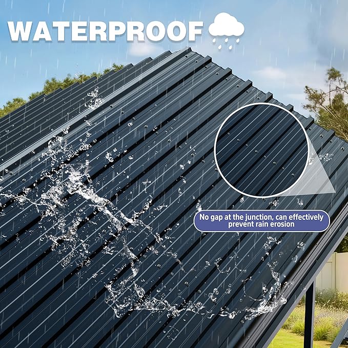 - Attractive Design: The galvanized steel roof adds a sleek, modern look to your outdoor space. Around the panel, we also attached protective tape to prevent you from being scratched by the sharp panel.