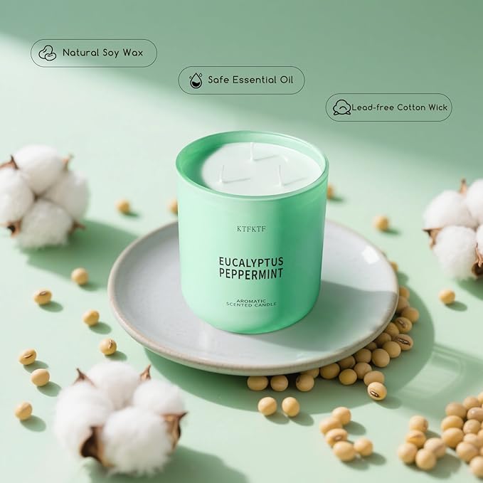 Eucalyptus Peppermint Scented Candle for Home, 14.2oz 80 Hours Long Lasting Aromatherapy Candles for Stress Relief & Energy, Non-Toxic Essential Oil & Soy Wax | Cooling Mint & Woody Aroma