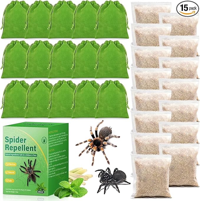 Spider Repellent for Indoor, 15 PCS Natural Spider Deterrent Pouches Peppermint Oil Spiders Roach Ant Away, Pest Control Spider Repellant Solution for House Garage Patio Attic, Family & Pet Safe