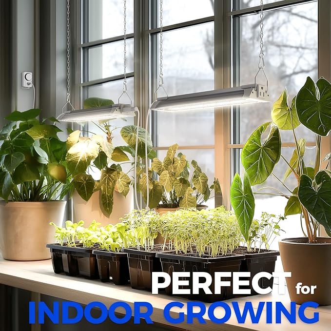 - Linkable Design & Full Light Coverage: The LED grow light supports daisy chaining up to 6 lights, each with 57 inches power cords and individual on/off switches for customized lighting. This flexible setup ensures comprehensive light coverage, making it ideal for indoor, plant shelves, vegetable, greenhouse