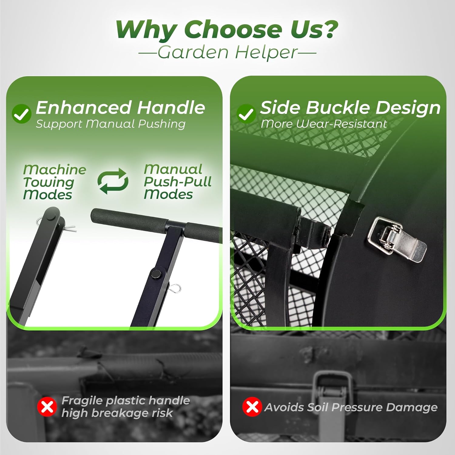 - MANUAL PUSH & TOW-BEHIND DUAL MODES: Equipped with an ergonomic T-handle for manual push/pull operation and compatible with garden machinery for tow-behind use. With the upgrade T-handle to avoid broken and makes it more durable and sturdy. Ergonomic rubber handle grips for non-slip and comfortable. Flexible functionality meets various lawn sizes and user needsāperfect for homeowners and professional landscapers alike.