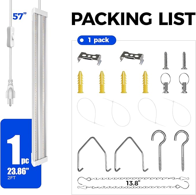 Barrina TX36 2FT Grow Light for Indoor Plants, 36W(200W Equivalent), High PPFD, Full Spectrum, Hanging Plant Lights for Indoor Growing, Seedlings, Vegetables, with On/Off Switch, Linkable, 1 Pack