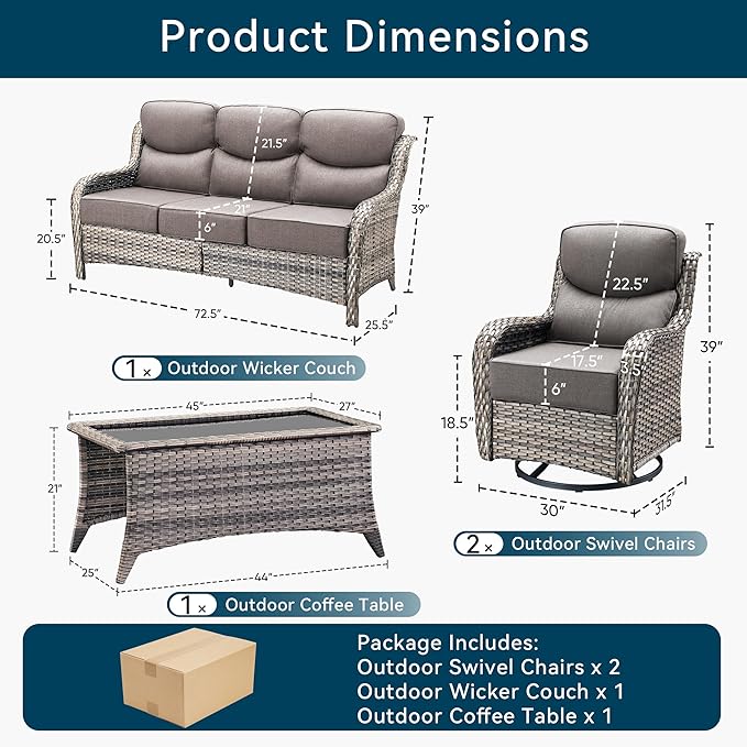 - Swivel Base Design:Experience fabulous comfort with our swivel rokcer patio chairs. The innovative swivel-glide mechanism allows 360 degree rotation paired with gentle rocking motion. Whether you're unwinding or socializing, these chairs deliver a comfortable and enjoyable outdoor experience
