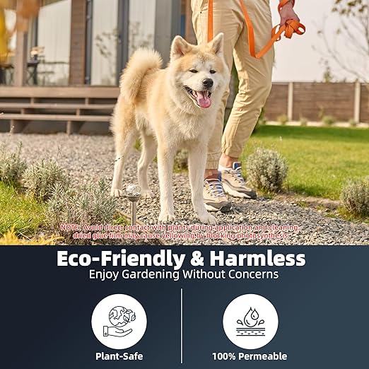 - SAFE FOR PETS AND THE ENVIRONMENT: Our non-toxic formula is designed with your pets and the planet in mind. You can confidently use our mulch glue in your garden, knowing it is safe for animals and plants, while still delivering powerful performance. NOTE: Avoid direct contact with plants during application and cleaning - dried glue film may cause yellowing by blocking photosynthesis.