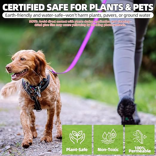 - SAFE FOR YOUR LANDSCAPE: Shabebe mulch glue is water - permeable and non - toxic. It won't harm your plants or the soil's natural balance. It is also safe for children and pets, allowing you to enjoy your outdoor space without any concerns. NOTE: Avoid direct contact with plants during application and cleaning - dried glue film may cause yellowing by blocking photosynthesis