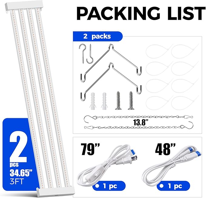- Linkable Design & 360° Heat Dissipation: 3ft plant light with 4 spaced LED panels for enhanced airflow, ensuring 360° cooling and longer LED lifespan. Ideal for seedling starters, greenhouses, plant shelves and kitchens