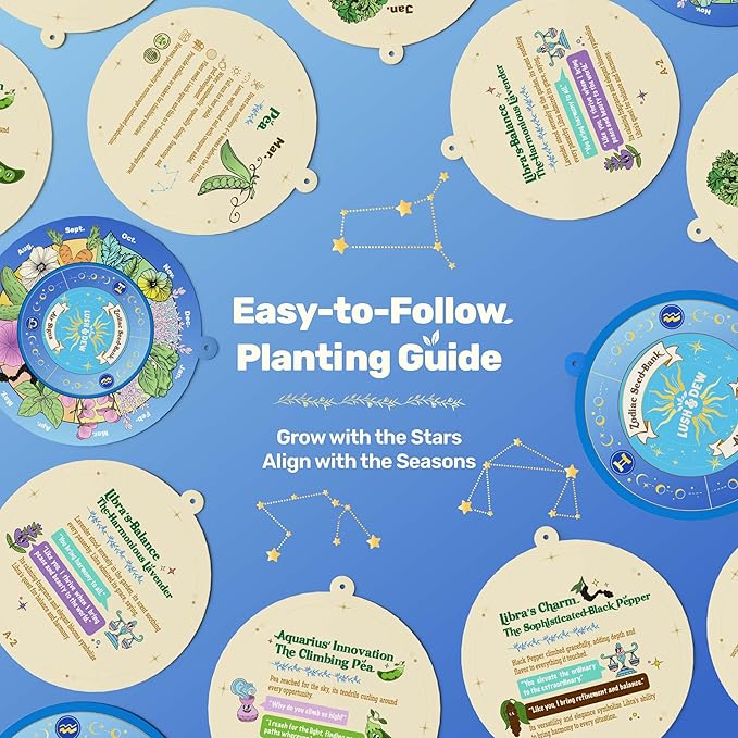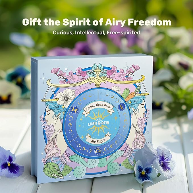 Lush&Dew Gardening Gift for Women Men, Zodiac Garden Seed Bank, 12 Types Non-GMO Vegetables Flower Seeds in Seed Organizer, Magnetic Gift Box, Witchcraft Supplies with Moon Calendar (Air Signs)