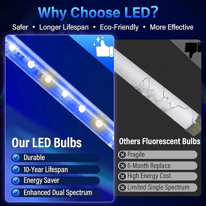 - [ 10-Year Energy-Saving LED ] Durable LED tube lasts up to a decade(vs. 6-month replacement cycles for fluorescent bulbs), reducing energy use by 40%+ for eco-friendly, cost-efficient operation.