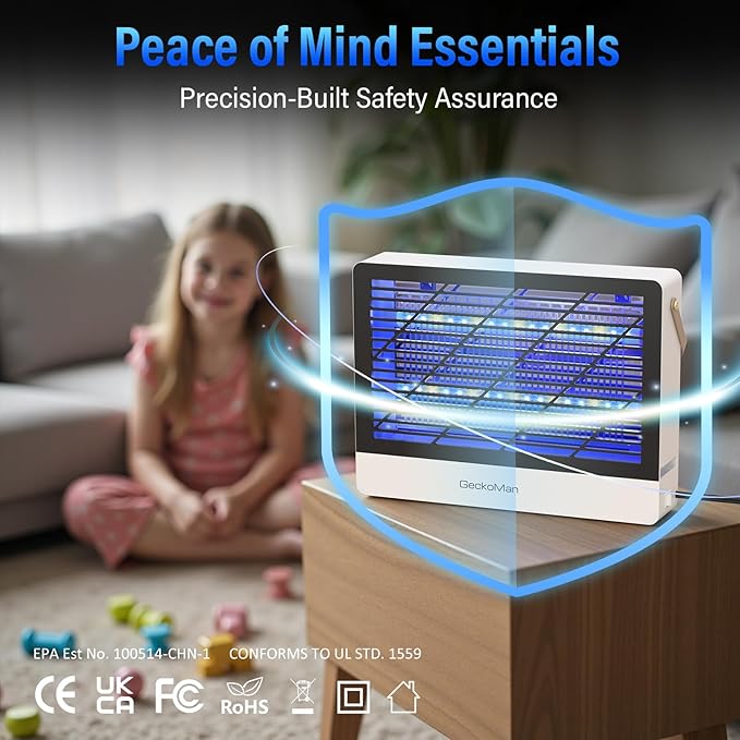 GeckoMan LED Indoor Bug Zapper Indoor Fruit Fly Trap for Indoors Mosquito Zapper Fly Zapper, Energy-Saving Max-Attract Hybrid-Spectrum Tube • 10-Yr Life, Enhanced High-Volt Instant Kill