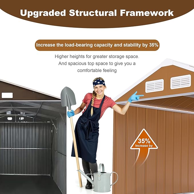 - Spacious 8x10 FT Tool Shed: Our large metal shed provides generous storage space. Ideal for lawn mowers, garden tools, bicycles, and patio furniture.