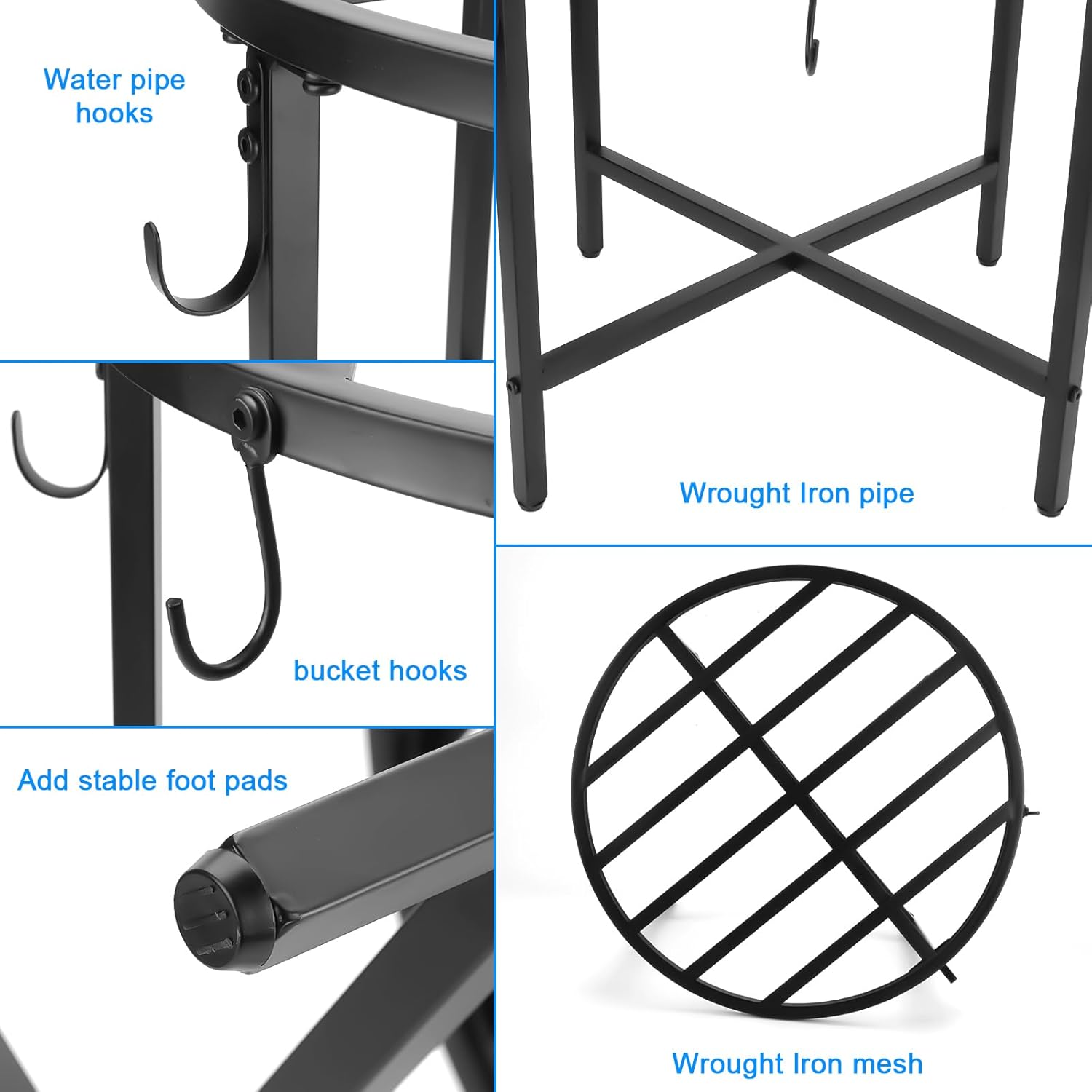 - 【Built-in Hooks for Bucket & Hose】Designed for ultimate convenience, this rain barrel stand features integrated hooks to securely hold your watering bucket and garden hose. Keep everything organized and within reach while maximizing your outdoor space. Perfect for quick, mess-free watering and storage