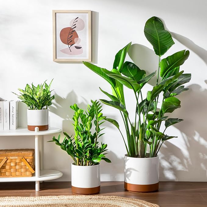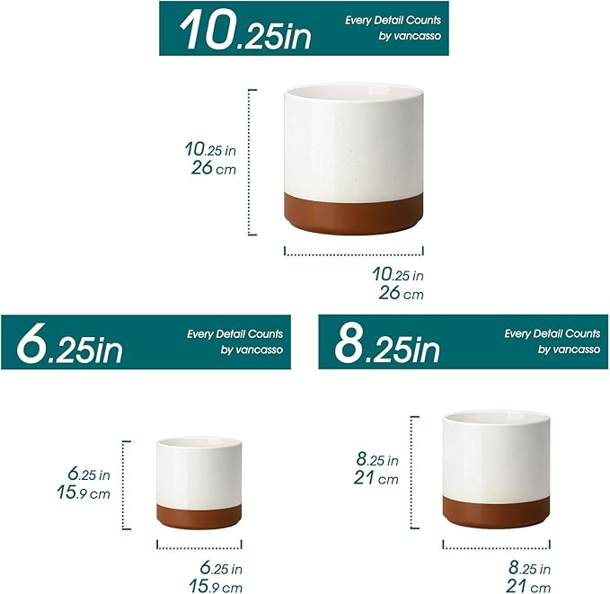- 【Ceramic Planter Pots】 This set includes three beautifully crafted ceramic flower pots in 6, 8, and 10-inch sizes, perfect for growing a variety of plants and flowers.