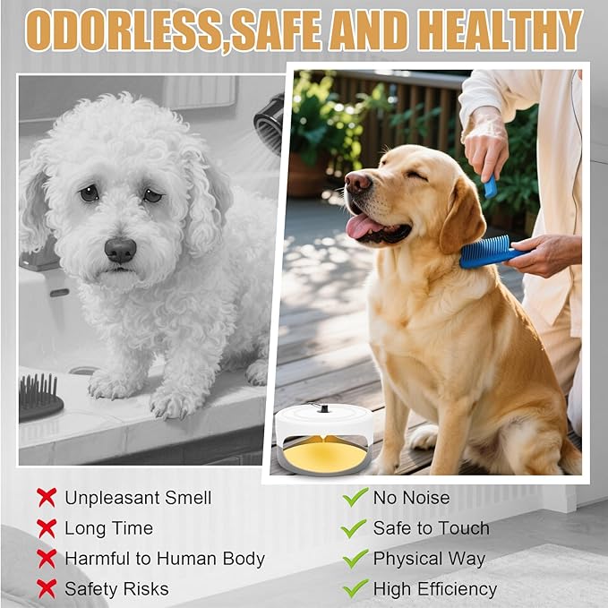 - 🌟【Durable & Reliable Flea Trap】How to get rid of fleas in house? Our flea traps utilize a design that attracts pests from all 360° directions which provide an ideal solution for eliminating fleas inside your home. The combination of durable glue discs and energy-efficient light bulbs guarantees consistent performance, which can withstand daily wear, ensuring long lasting effectiveness and usability, protecting both your home and pets.