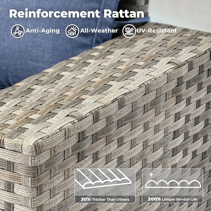 - All-weather Wicker Rattan: Our outdoor sofa sets have very durable PE wicker rattan for all-weather use and a natural texture with good coloring. The high-quality patio seating made of powder coated steel frame ensures good strength and stability