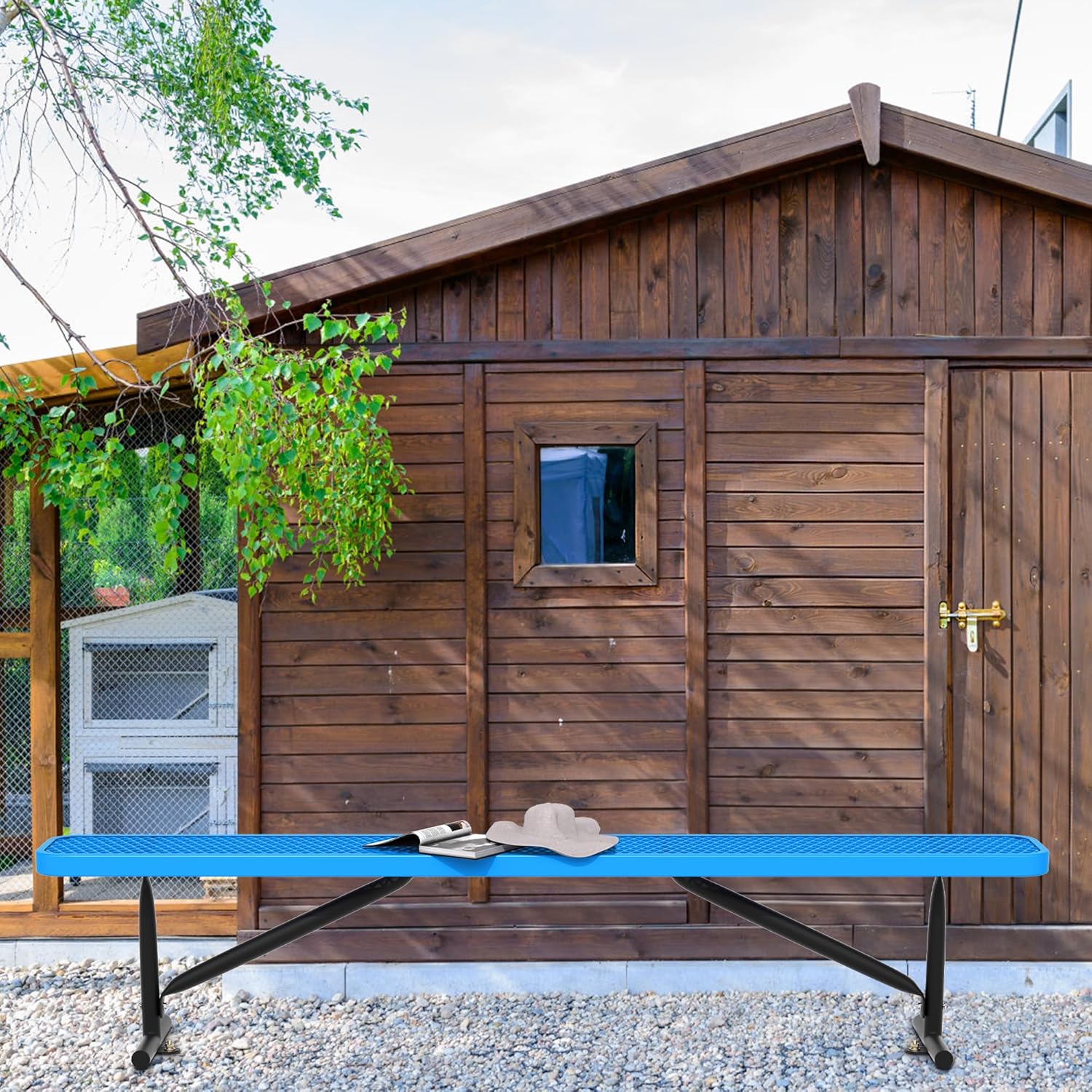 8 Feet Heavy Duty Metal Park Bench for Outside, Outdoor Bench with Portable Frame, Commercial Benches for Shopping Mall, Store, Park, Patio, Deck, Blue