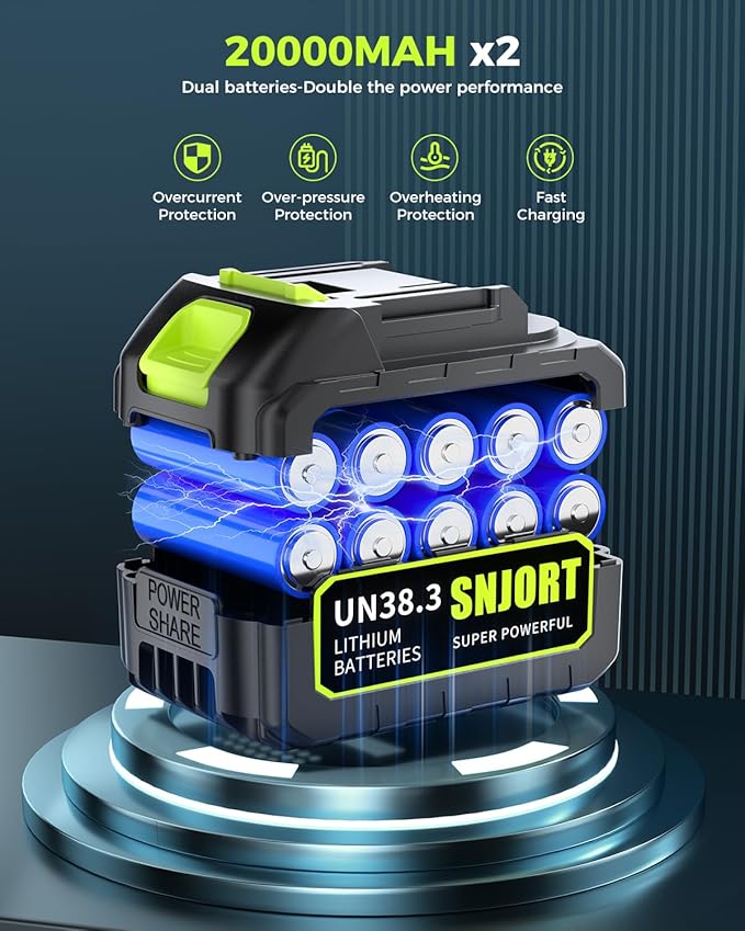 - Complete Leaf Blower Package: This cordless leaf blower is equipped with two 20,000mAh large-capacity batteries that provide up to 50 minutes of continuous operation. The Cordless leaf blowers do not require wires to provide faster, easier and easier cleaning.