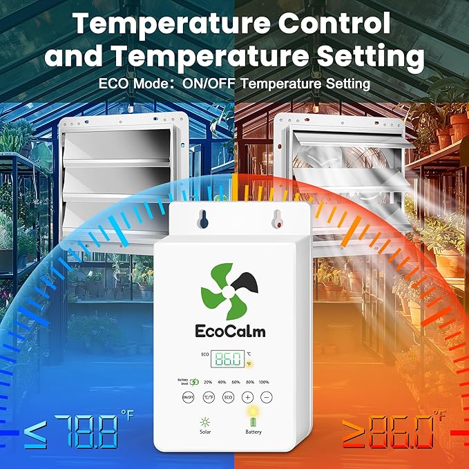 - 【Solar Air Conditioner with Battery】Equiped with a 5000mAh rechargeable battery, our 10" solar powered exhaust fan provides extra circulation at night time for your houses. The battery works for 6 hours after full charged in sunlight, supports the ventilation during night time or cloudy day. The intelligent system switches the power supply mode according to the sunlight conditions.