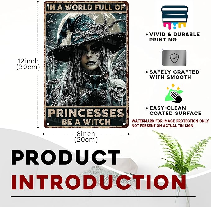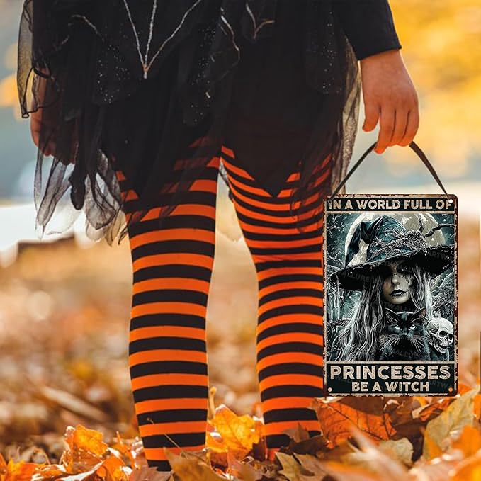 Goth Metal Tin Sign Vintage Halloween Wall Art Kitchen Witch Decoration Spooky Rustic Decor Tin Plaque Retro Iron Painting 8x12inch