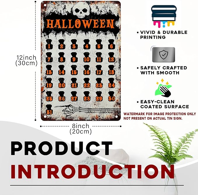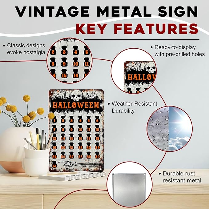 Halloween Countdown Vintage Sign Halloween Skull Metal Tin Sign for Home Bar Kitchen Hotel Dining Room Coffee 8x12inch