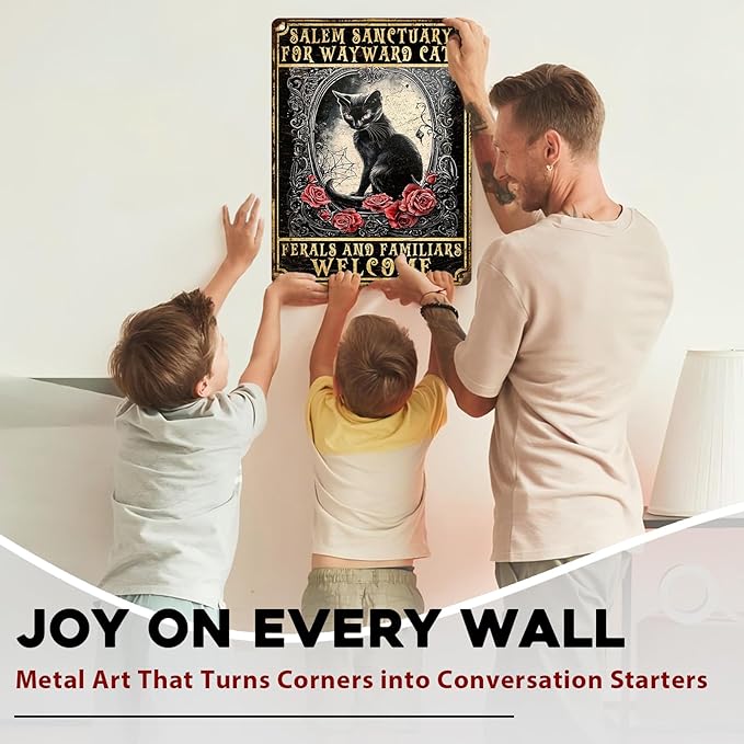 Halloween Black Cat Vintage Sign Salem Sanctuary For Wayward Cats Halloween Metal Sign for Home Bar Kitchen Hotel Dining Room Coffee 12x16inch