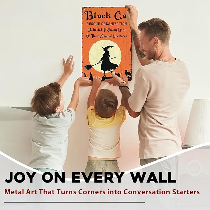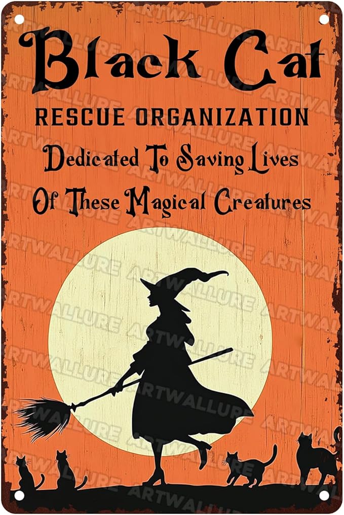 Black Cats Rescue Halloween Decor Vintage Metal Tin Sign Rustic Wall Art Gothic Home Decor Tin Plaque Retro Metal Poster for Bar Cafe 8x12inch