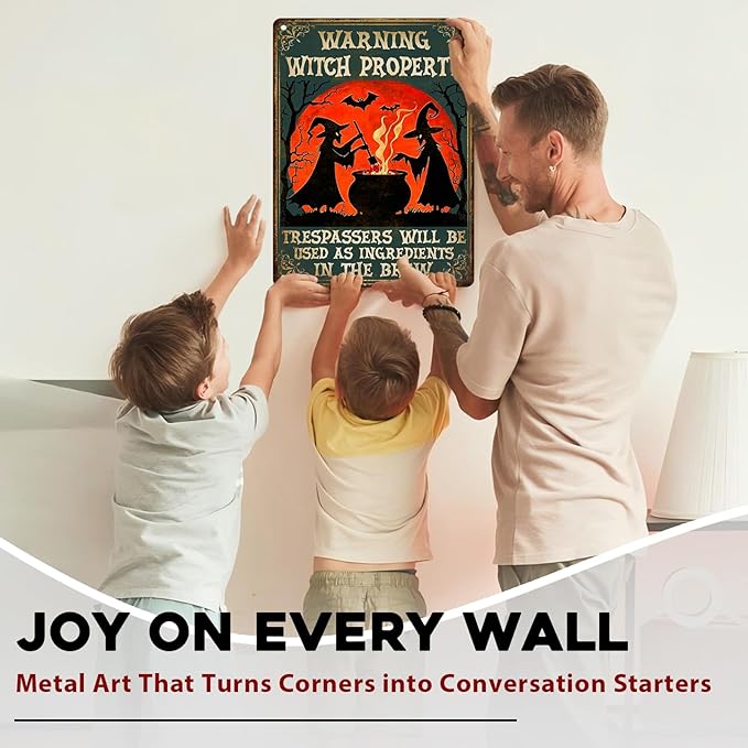 Witch Property Warning Vintage Sign Halloween Witch Metal Tin Sign for Home Bar Kitchen Hotel Dining Room Coffee 12x16inch