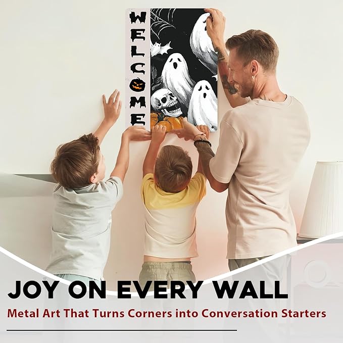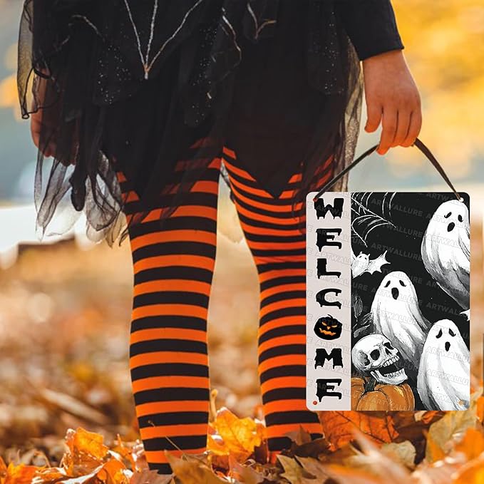 Welcome Halloween Ghost Metal Tin Sign Vintage Retro Wall Decor Rustic Metal Poster For Home Yard Outdoor 12x16inch