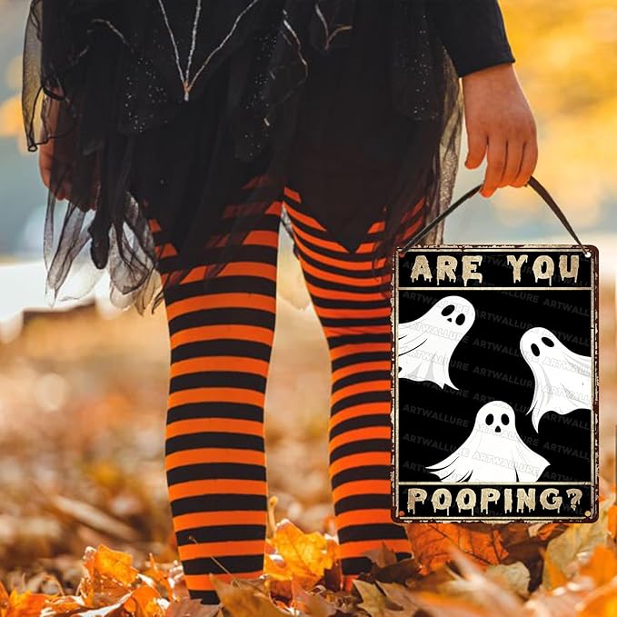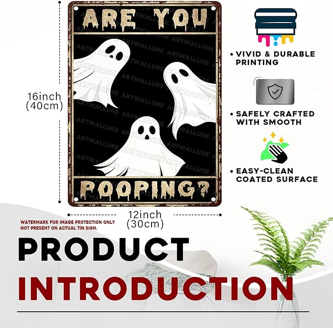 Ghost Metal Tin Sign Vintage Halloween Wall Art Rustic Bathroom Decor Tin Plaque Iron Painting Restroom Washroom 12x16inch