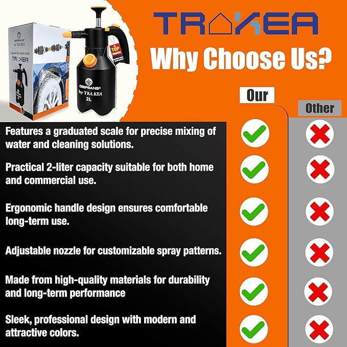 - ๐๐๐ซ๐ ๐จ๐ง๐จ๐ฆ๐ข๐ & ๐๐จ๐ซ๐ญ๐๐๐ฅ๐ ๐๐๐ฌ๐ข๐ ๐ง: Comfortable grip handle with thumb-lock trigger reduces hand fatigue. Lightweight 2-liter size is perfect for mobility without frequent refills.
